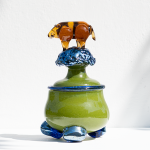 Bernard Heesen, architect by training and self-taught in the art of glassblowing, plays an ironic game with the modern categories of art and kitsch, craft and industry, original and copy, unique and series, collector and consumer, taste of the elite and taste of the masses.
