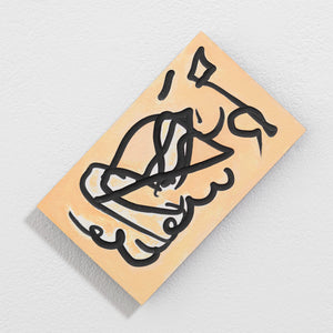 'Looking For Wind In The Fields' is a new series of paintings made by carving black MDF to produce squiggling and twisting lines. The white ground is painted with yellow dots and symbols of flying Judenhuts (Jewish hats from the Middle Ages), which look like UFOs. These refer to the artist's exploration of Judeo-Futurism (reclaiming symbols of the past in order to reimagine and queer them).